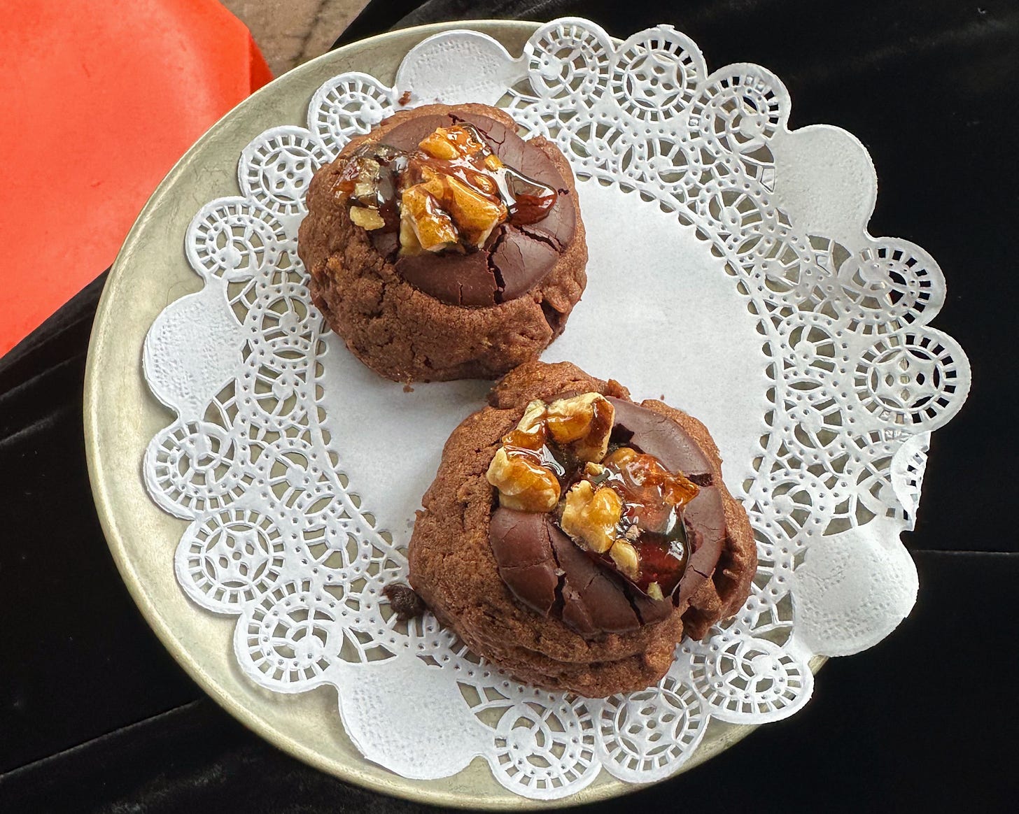All treat, no tricks! This black sesame and chocolate cake is a favourite. As are Fiore’s chocolate-toffee-cornflake cookies.